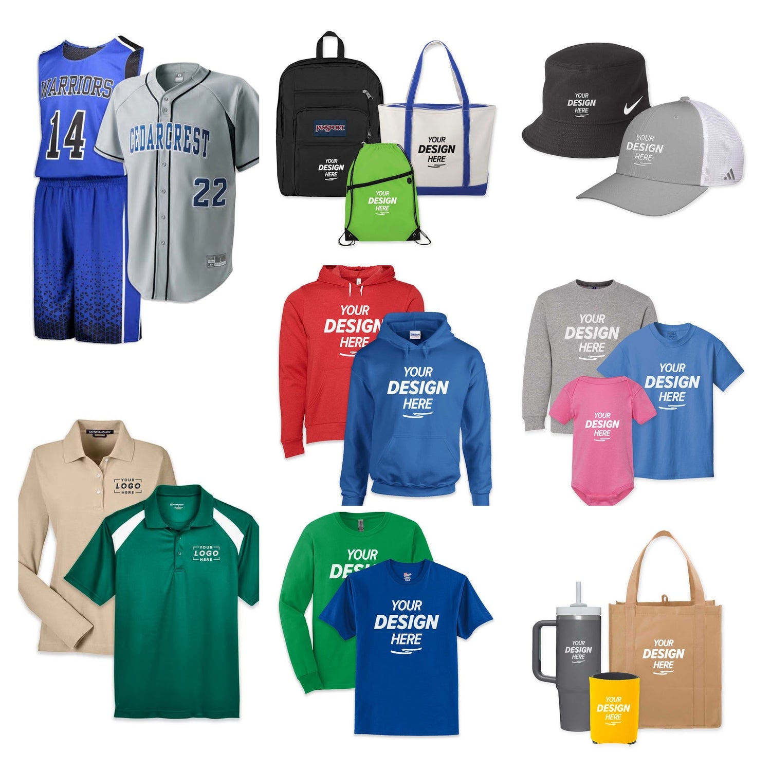 T-shirts | Hoodies | Sweatshirts| Long Sleeves | Tank Tops | Baby Clothing | Corporate Clothing | Hats | Team Jerseys | Tote Bags | Aprons | Mugs | Glassware | Bottles & Tumblers | Picture Canvas | & More!