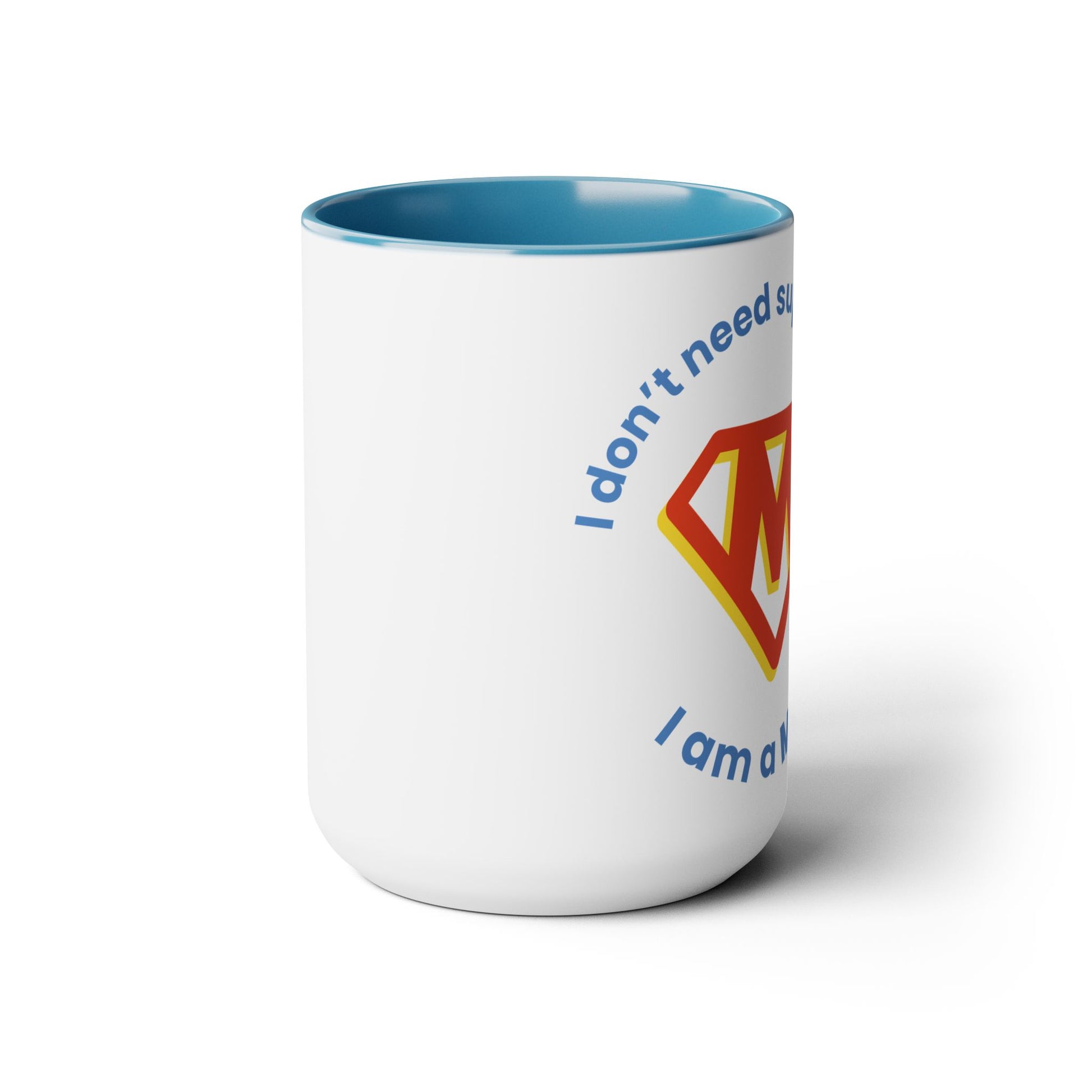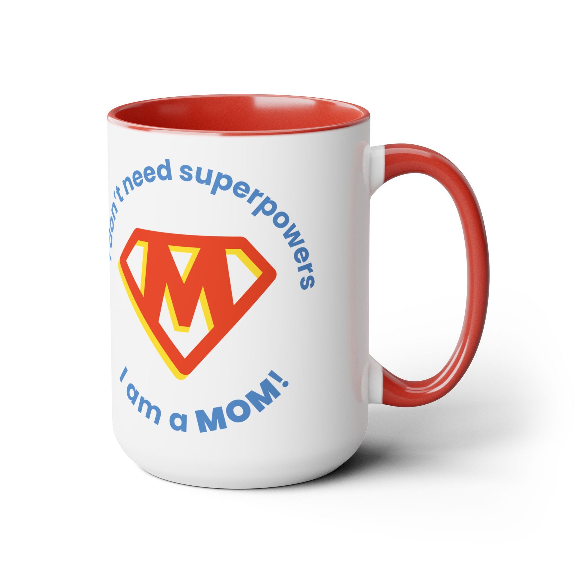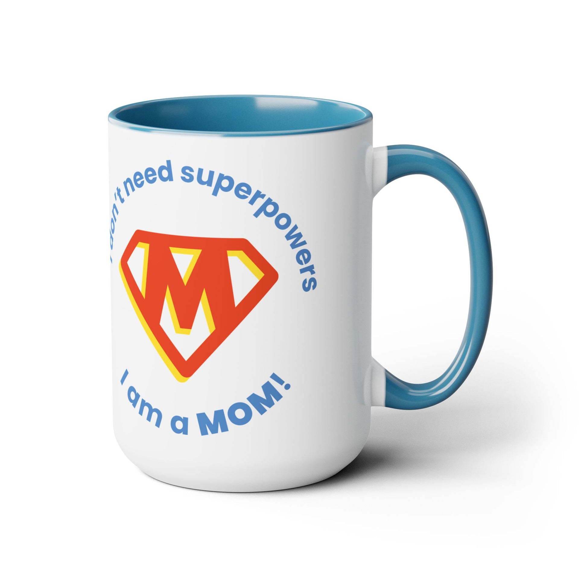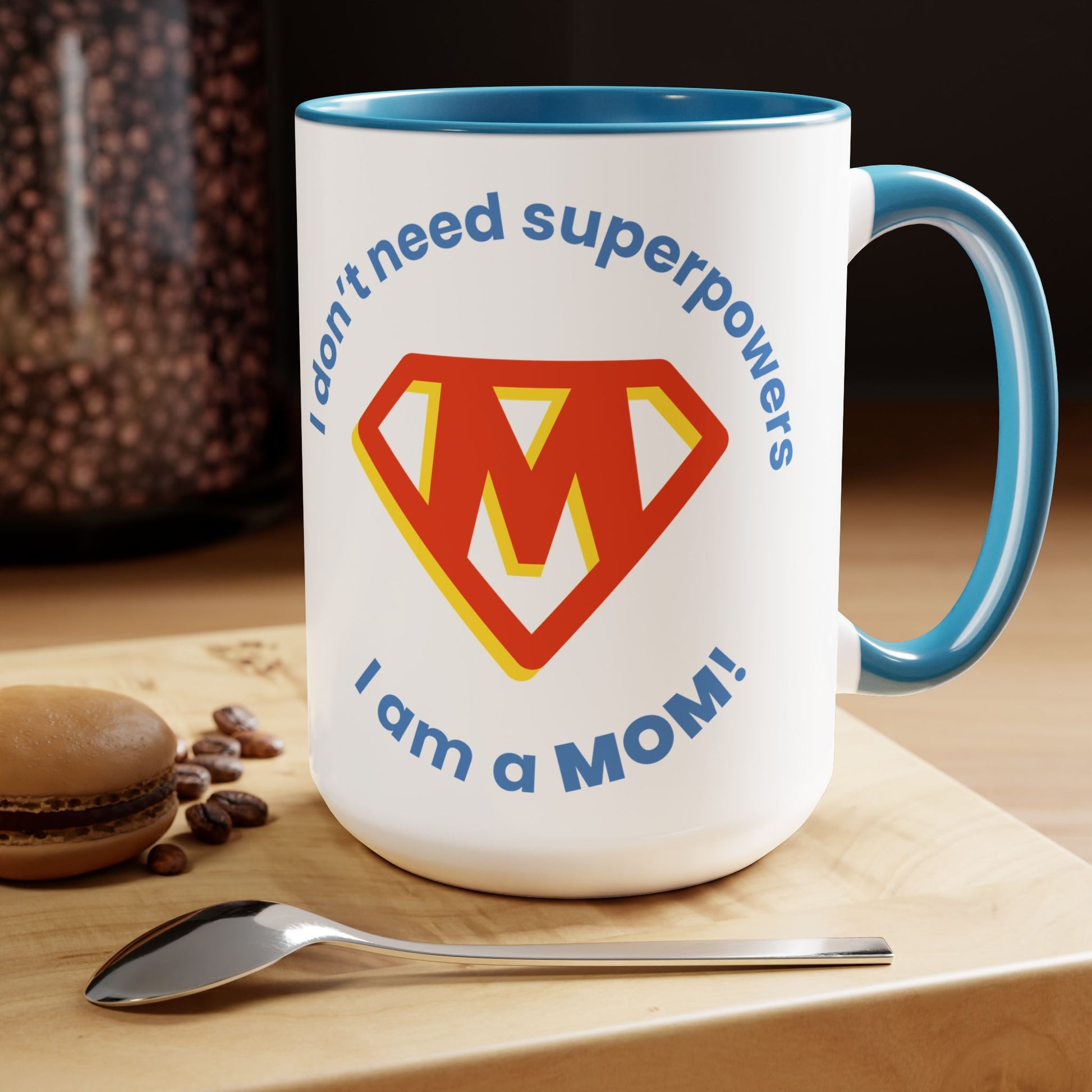 I Don't Need Superpowers I'm a Mom Two-Tone Coffee Mugs, 15oz
