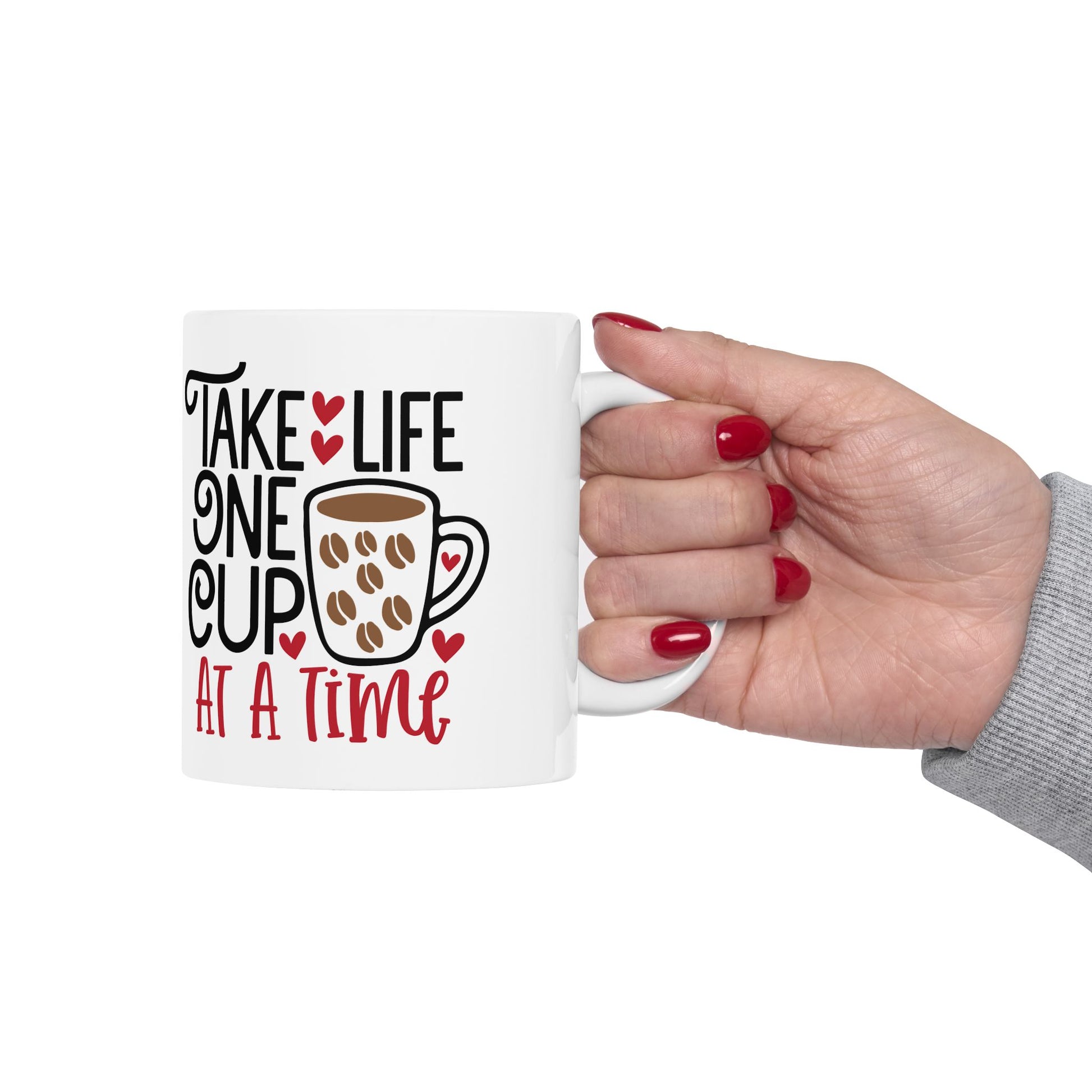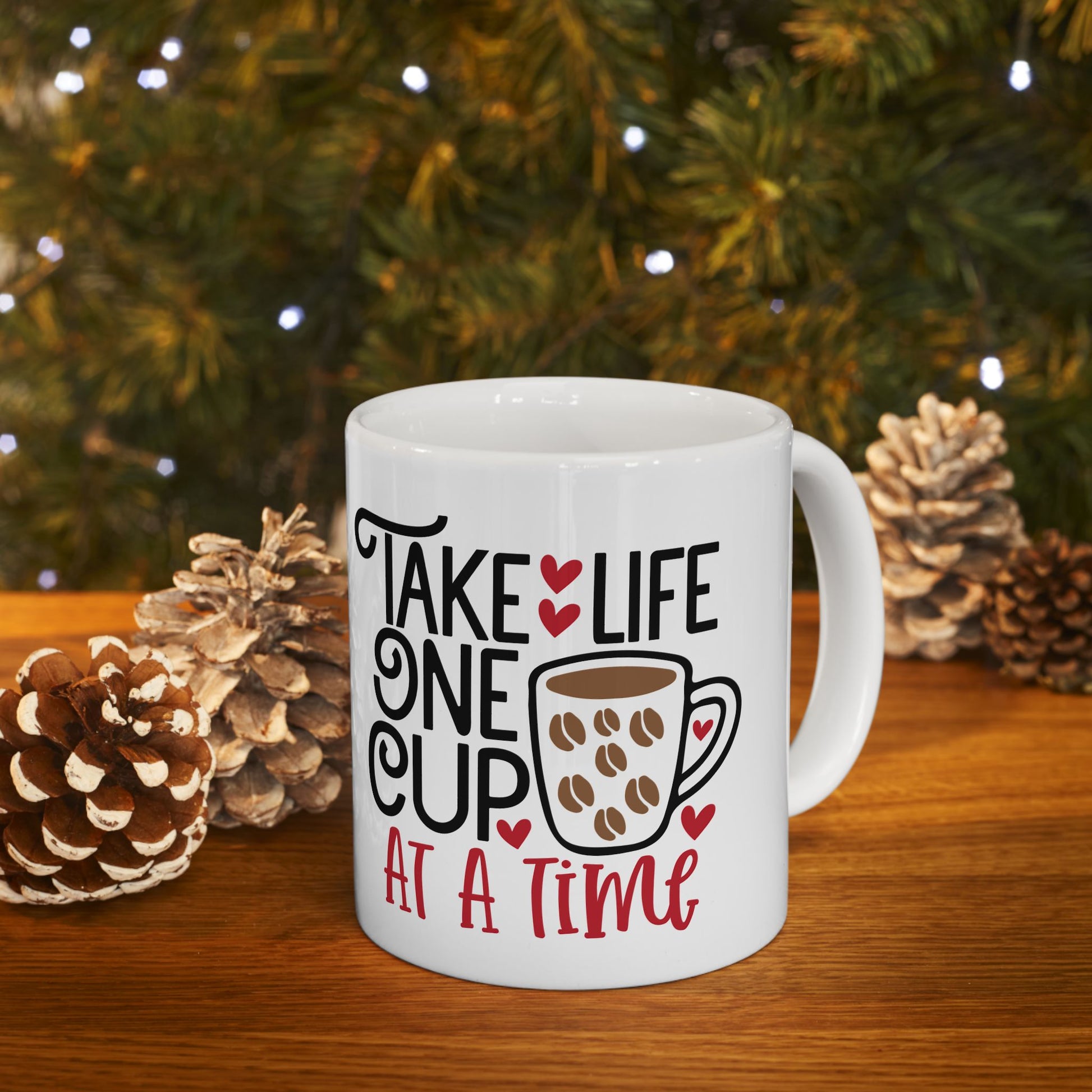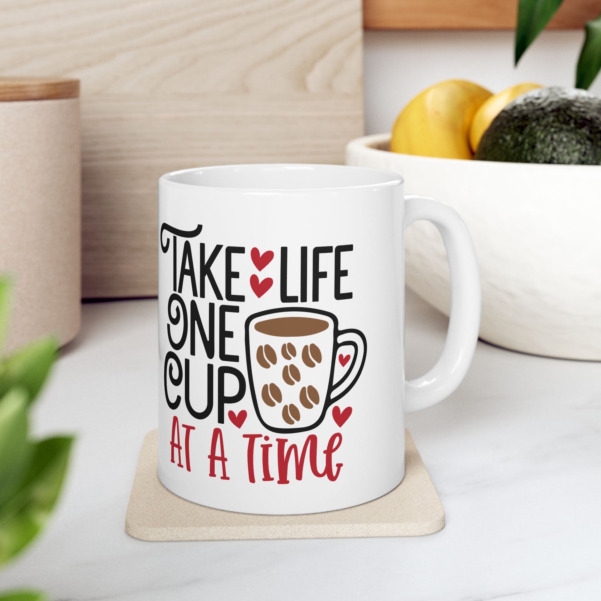 Take Life One Cup At a Time White Ceramic Mug, 11oz